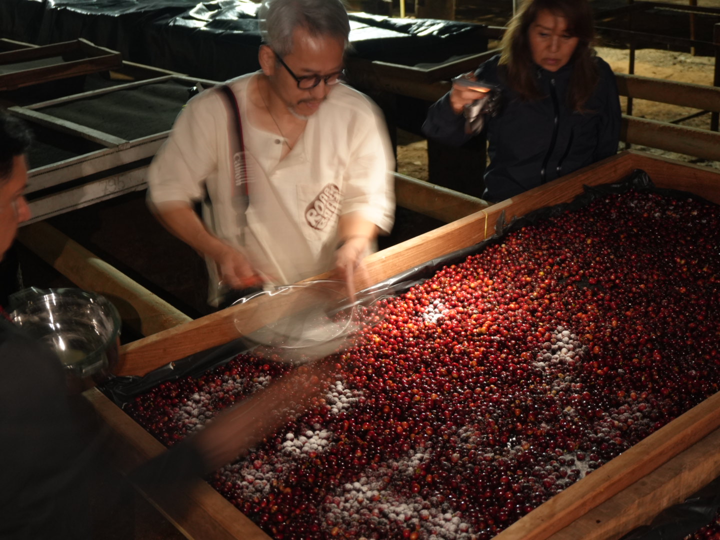 みんなとにかく真面目によく働く印象で、我々は20:00くらいにここを出発しましたが、発酵の進行具合を見るに、スタッフは深夜まで残っていそうな勢い。活気と勢いのある農園だなと感じました。