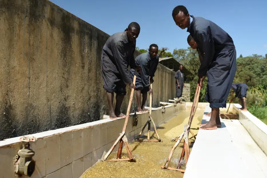 ウォッシュド精製では、ほとんどが収穫後すぐに果肉を機械で除去し、水洗によってミューシレージを発酵・分解させて取り除きます。
