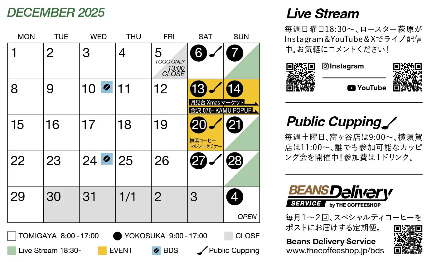 12/19(金)〜25(木)のクリスマスシーズンの7日間、モザイクモール港北で開催のコーヒーイベント〈横浜コーヒーマルシェ〉に出店いたします。