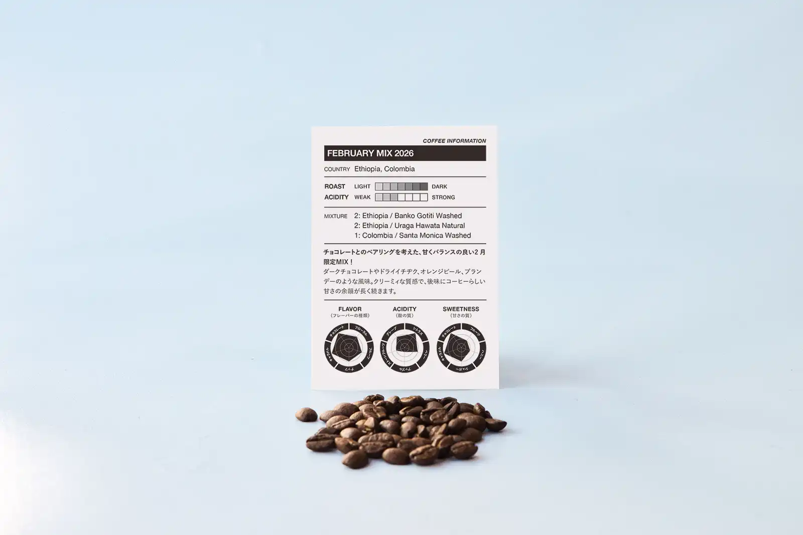2026年2月限定の【February Mix】は、甘いチョコレートと組み合わせて楽しみたい、フルーティでバランスの取れたブレンドに仕上がっています。