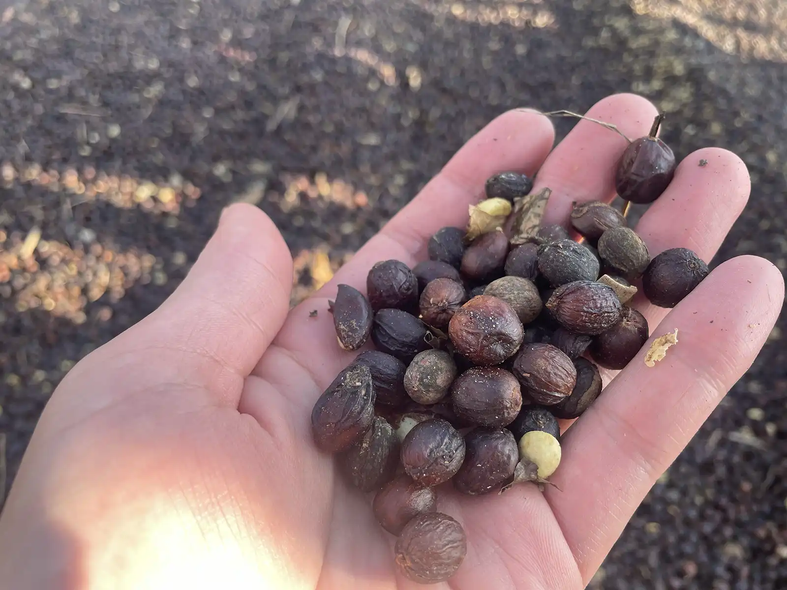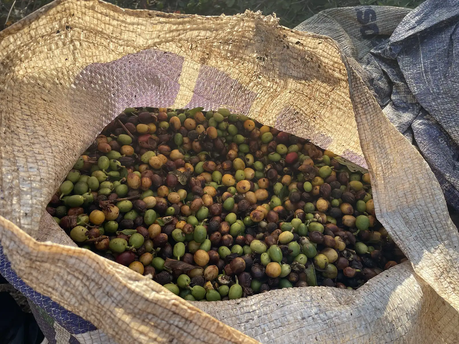 収穫後、未熟豆と完熟豆を選別し、果肉除去後に3〜4日間パティオに広げて乾燥させ、その後機械乾燥させます。