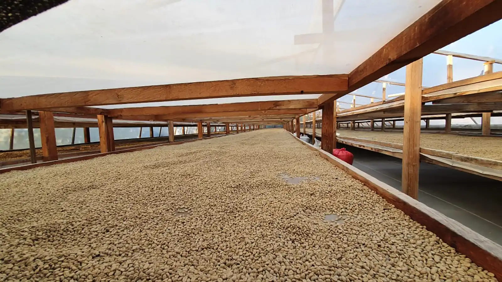 収穫後、チェリーは農園の加工場に運ばれ、そこで果肉が取り除かれ、一晩発酵され、その後農園のアフリカンベッドに移され、10日間ほど乾燥させます。