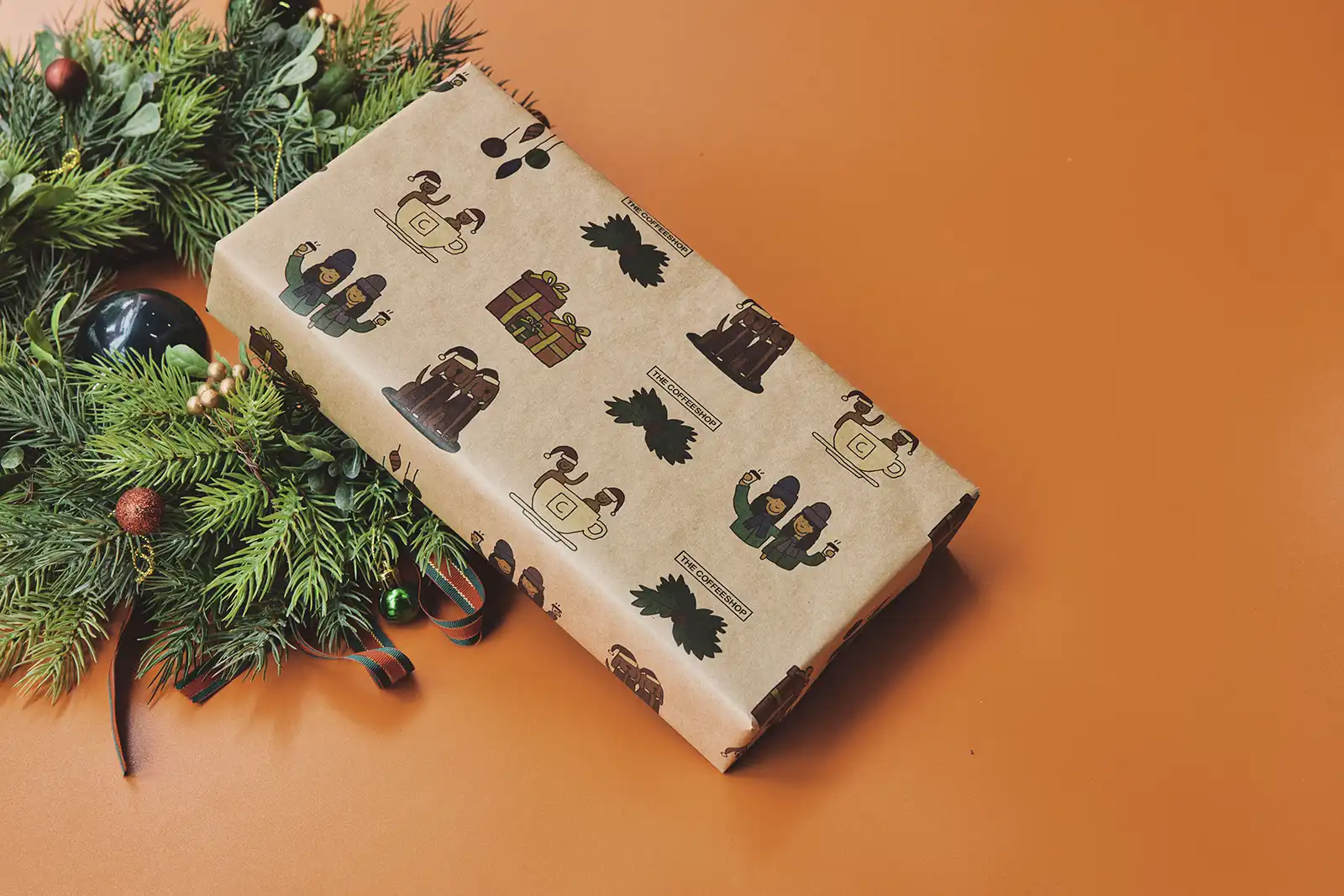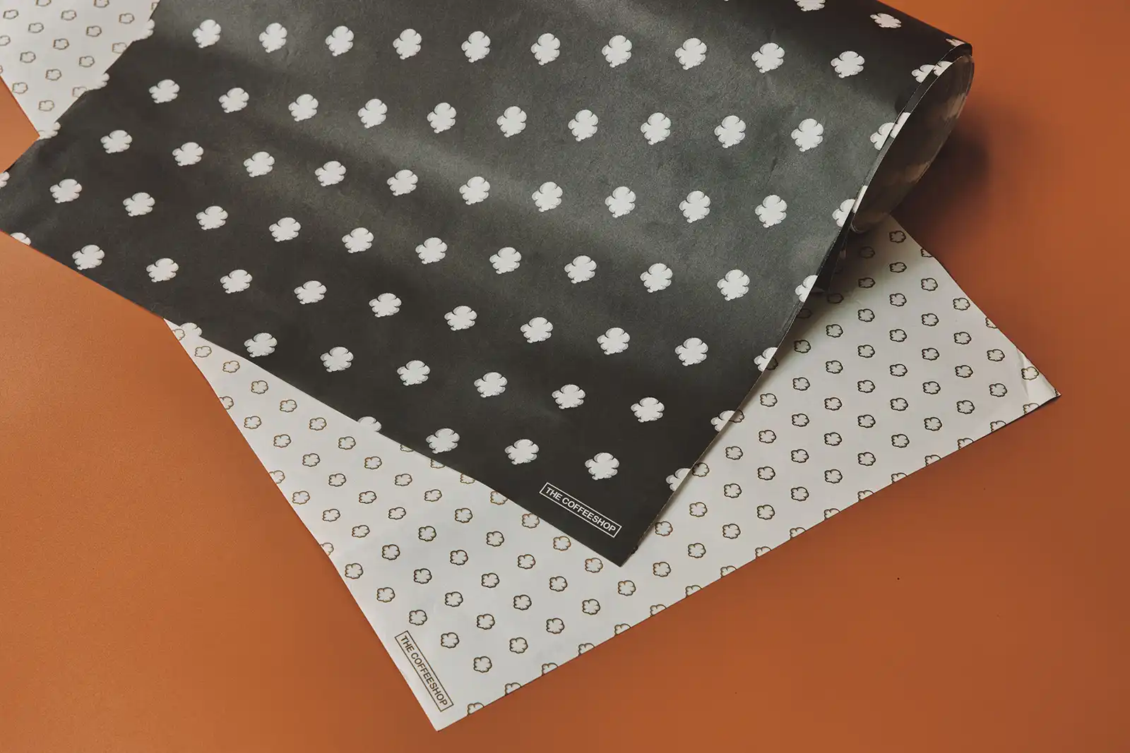 オプションでJ.30000デザインのラッピングペーパー(クラフトまたはホワイト)、THE COFFEESHOP定番デザインの雲モチーフのラッピングペーパー(ブラックまたはホワイト)の4種類からご選択いただけます。