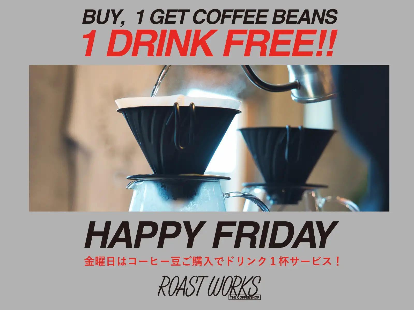 THE COFFEESHOPの焙煎所、ROAST WORKS横須賀店より、金曜日限定の嬉しいお知らせです。