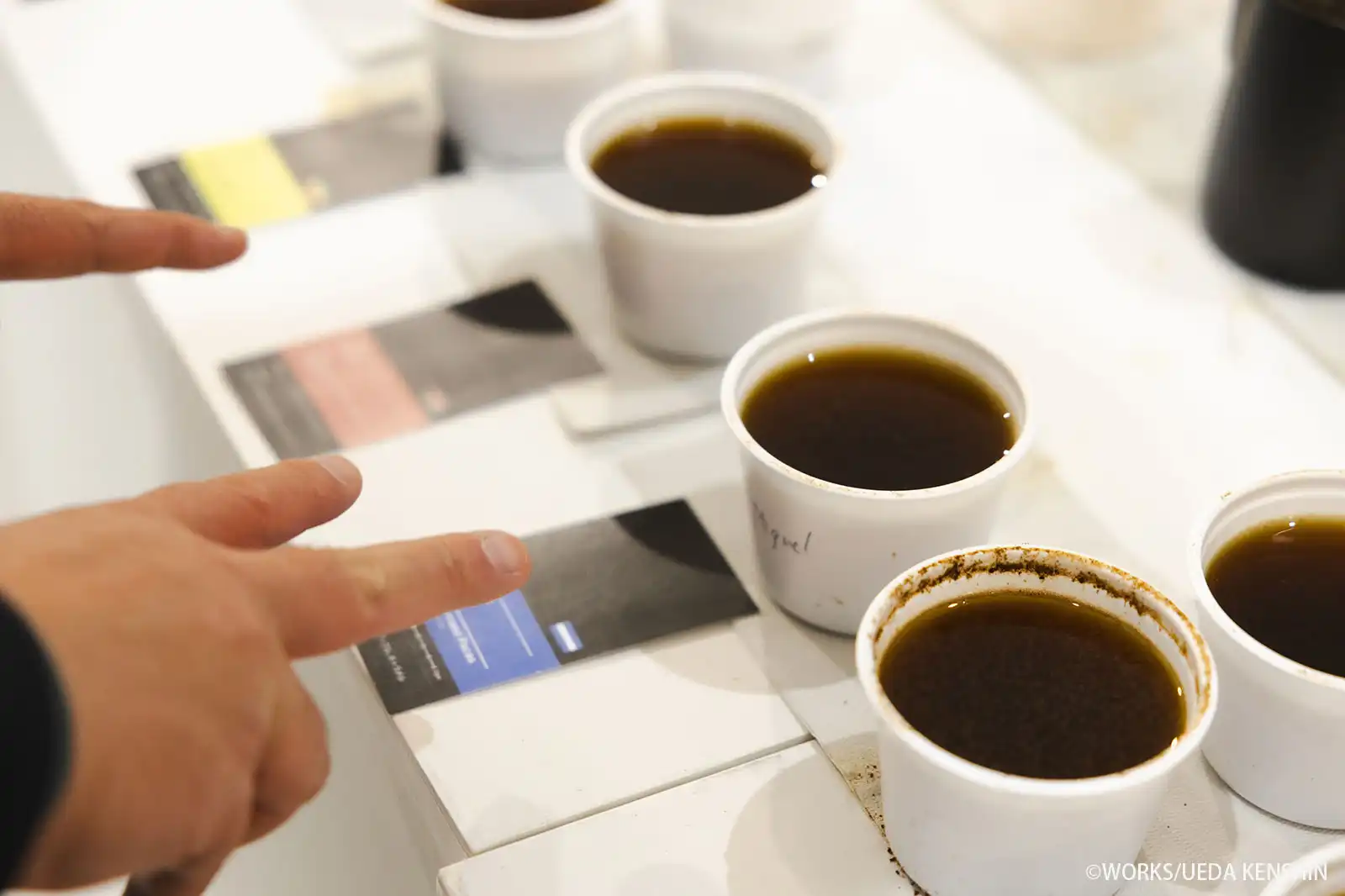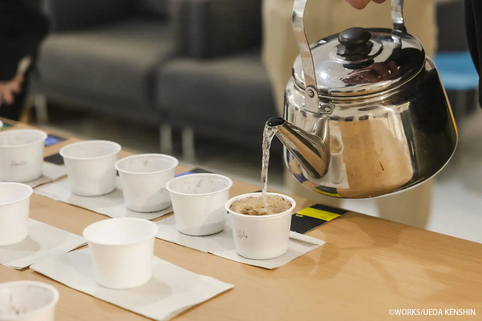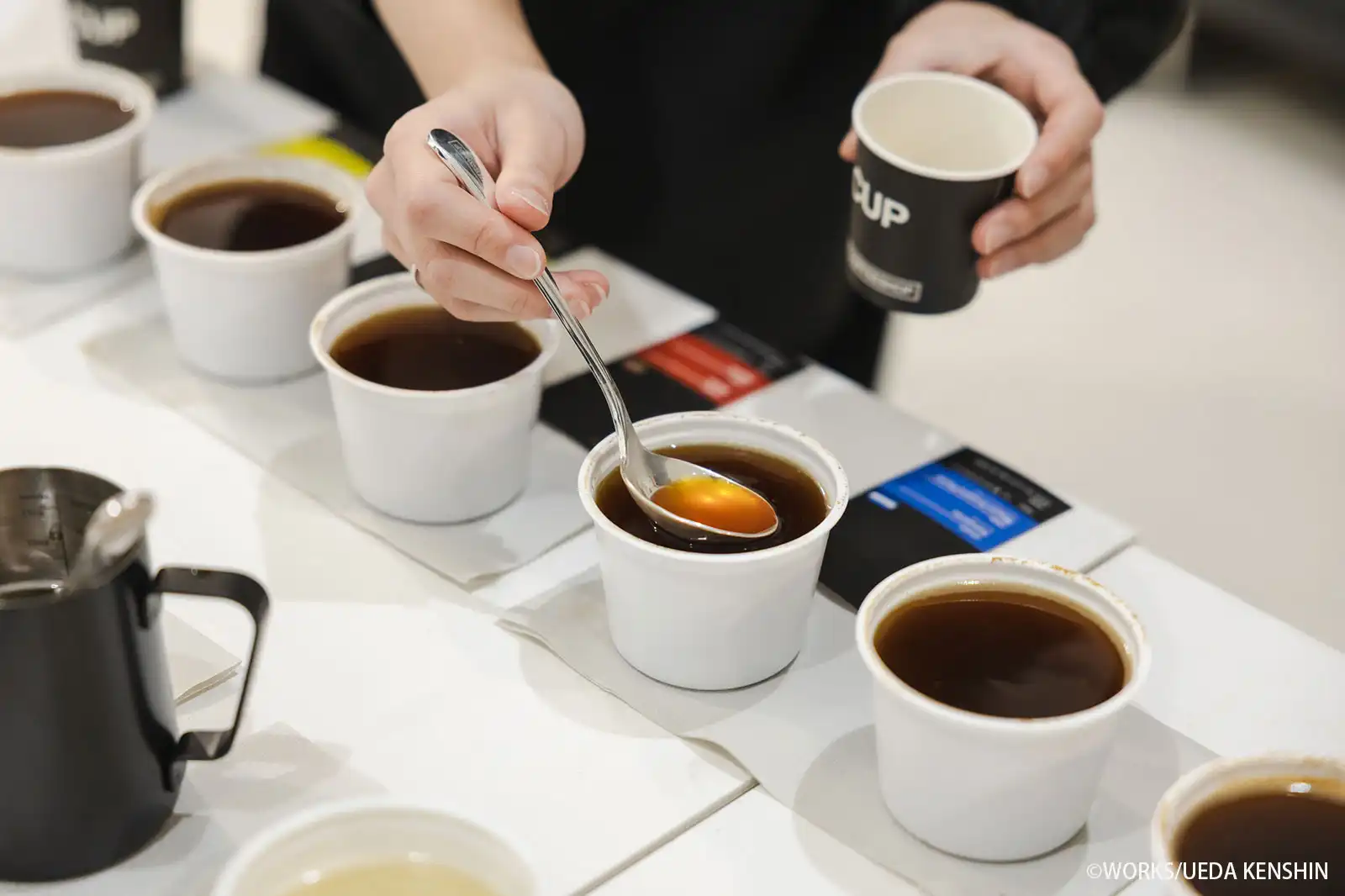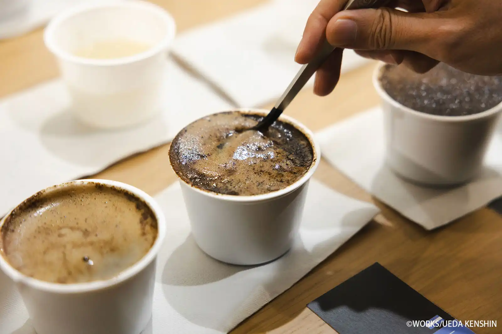 まずは、コーヒーのテイスティング手法である「カッピング」の体験からスタート。